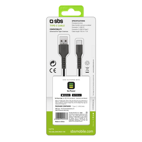 SBS TECLEMICROC15K USB-A - USB-C Kabel 1,5 m - sort