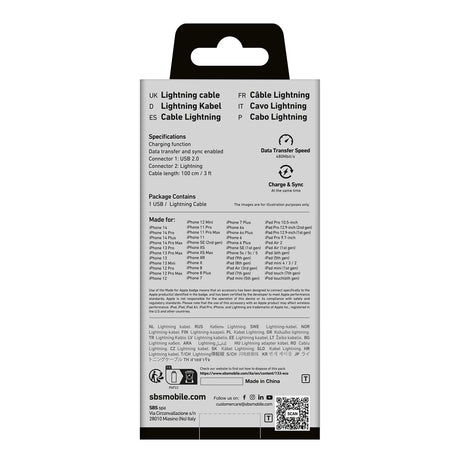 SBS TECABLEUSBIP589K USB-A - Lightning Cable 1m MFi Certificeret - sort