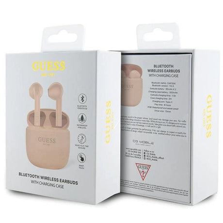 Guess Bluetooth-hovedtelefoner GUTWSJ14ESGP TWS + docking station pink/pink Printed Classic Logo