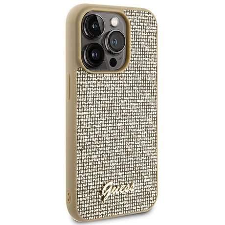 Guess Disco Metal Script-hylster til iPhone 15 Pro - guld