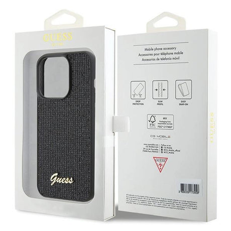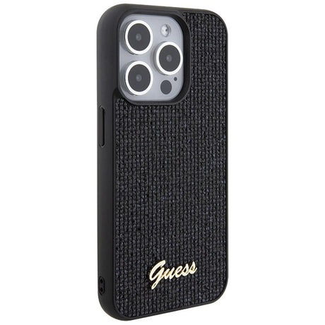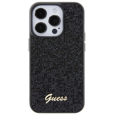 Guess Disco Metal Script-hylster til iPhone 15 Pro - sort
