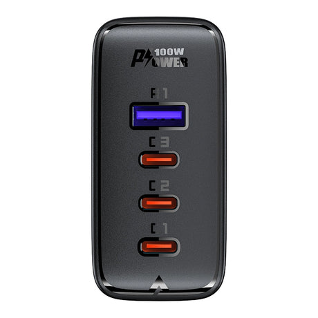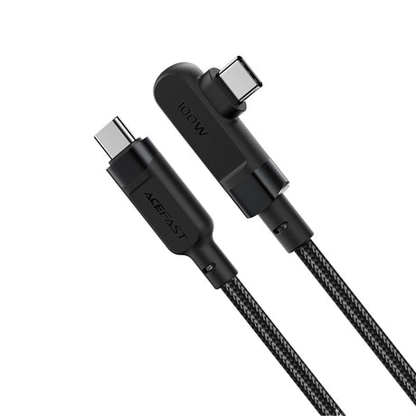 Acefast hurtigoplader GaN 3xUSB-C/1xUSB-A 100W sort + vinklet kabel USB-C - USB-C 100W 2m sort