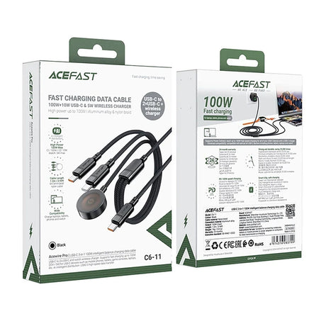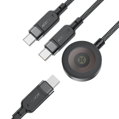 Acefast C6-11 USB-C 3in1 Kabel - 2x USB-C / Qi 480Mb/s 100W 1,2m - sort