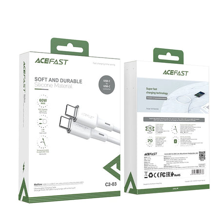 Acefast C2-03-CC USB-C - USB-C PD QC kabel 60W 3A 480Mb/s 1,2m - hvid