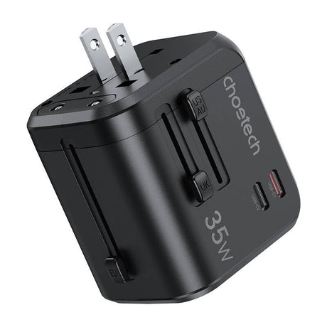Choetech PD5008 rejseoplader, 3xUSB-A, 2xUSB-C, GaN, 35W, US/EU/UK/AU (sort)