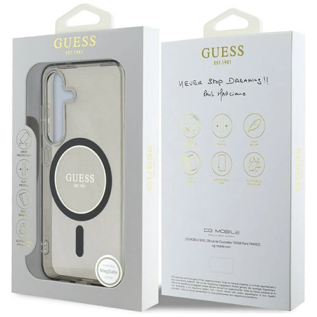 Guess Glitter Circle Classic Logo MagSafe-hylster til Samsung Galaxy S25 sort