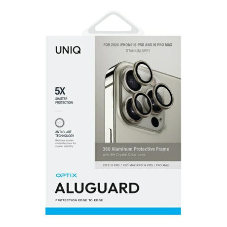 Uniq Optix Aluminium Camera Lens Protector iPhone 16 Pro / 16 Pro Max med applikator - titanium