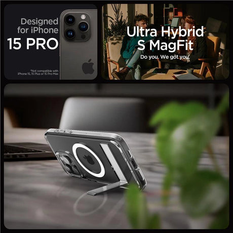 Spigen Ultra Hybrid S MagSafe Case med stativ til iPhone 15 Pro - Gennemsigtig