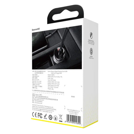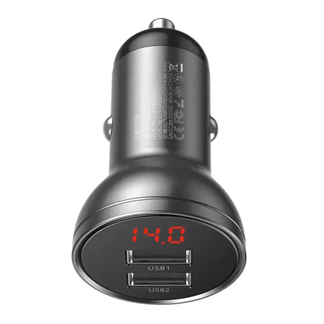 Ładowarka samochodowa Baseus z wyświetlaczem, 2x USB, 4,8A, 24W (szara)