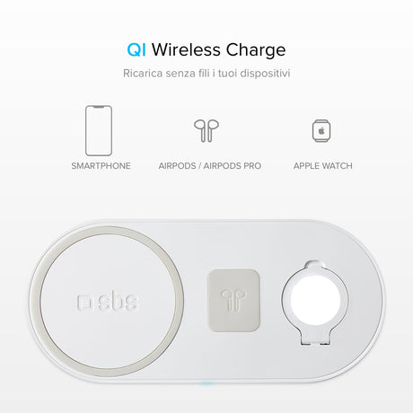SBS 3-i-1 lodret trådløs ladestation. Hvid