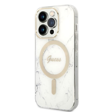 Guess GUBPP14LHMEACSH Case+ Charger Set iPhone 14 Pro 6.1" hvid/hvid hårdkasse Marble MagSafe