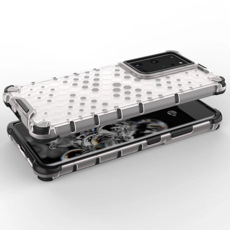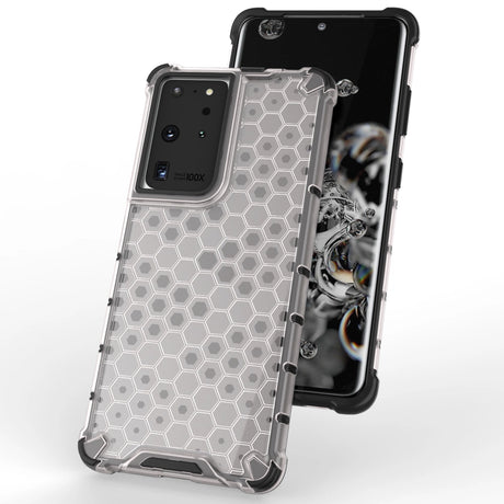 Honeycomb case pansret cover med en gel ramme til Samsung Galaxy S22 Ultra gennemsigtig