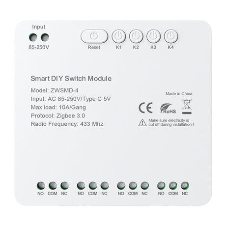 ZigBee 4-kanals switch modul med spændingsfri DC 32V kontakt Avatto ZWSMMD-4-250V