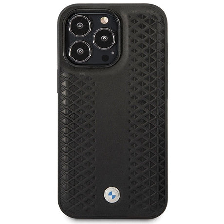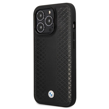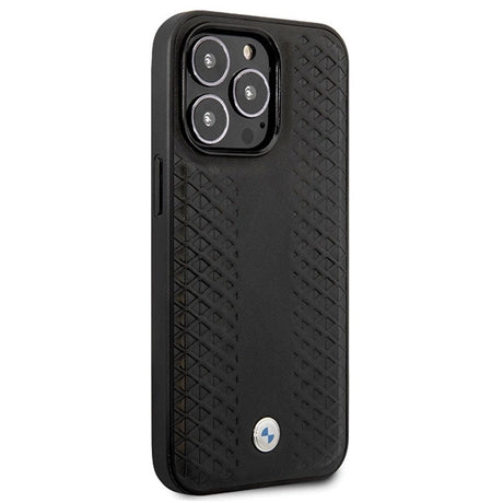 BMW læder Diamond mønster sag til iPhone 14 Pro - sort