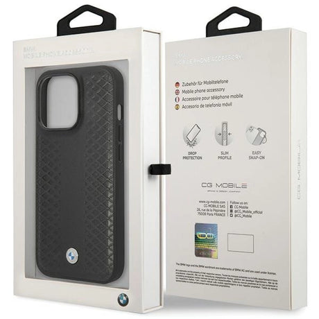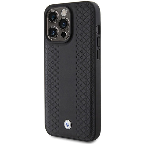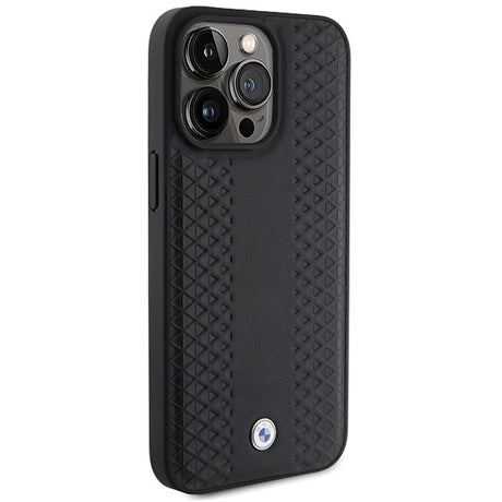 BMW læder Diamond mønster sag til iPhone 15 Pro - sort