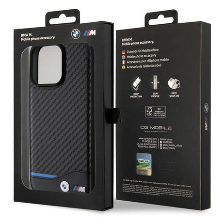 BMW læder Carbon-foder for iPhone 15 Pro Max - sort