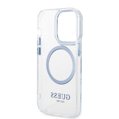 Guess GUHMP14XHTRMB iPhone 14 Pro Max 6.7" blå/blå hårdkasse Metal Outline Magsafe