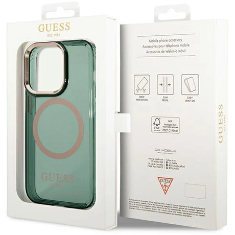 Guess GUHMP14XHTCMP iPhone 14 Pro Max 6.7" pink/pink hard case Gold Outline Translucent MagSafe