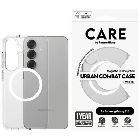 CARE af PanzerGlass Flagship Urban Combat White QI Case til Samsung Galaxy S25 - Gennemsigtig