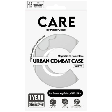 CARE af PanzerGlass Flagship Urban Combat White QI Case til Samsung Galaxy S25 Ultra - Transparent