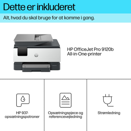 HP OfficeJet Pro 9120b Trådløst All-in-One Farve Printer, Tosidet print; Kopimaskine, scanner