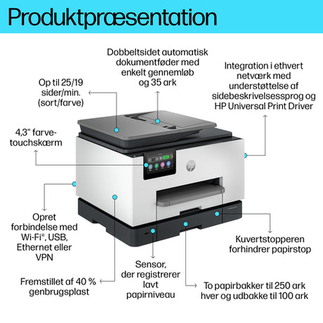 HP OfficeJet Pro 9130b Trådløst All-in-One Farve Printer, Tosidet print; Kopimaskine, scanner