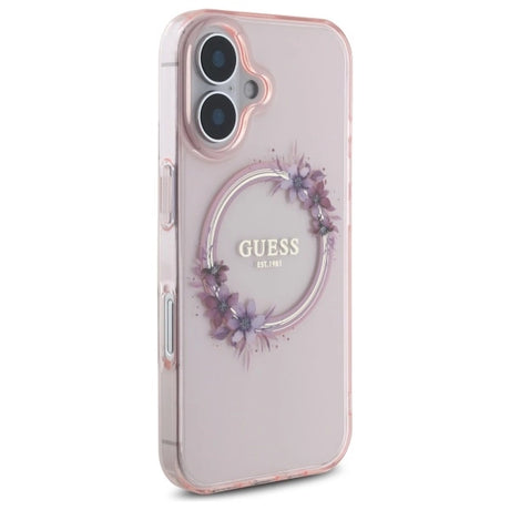 Guess IML Flowers Wreath MagSafe iPhone 16 Case - Pink