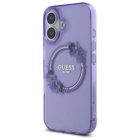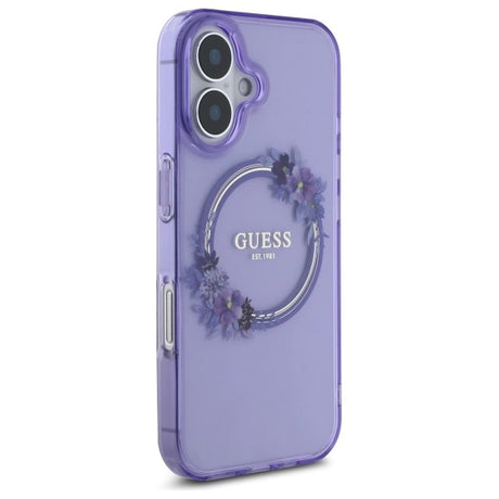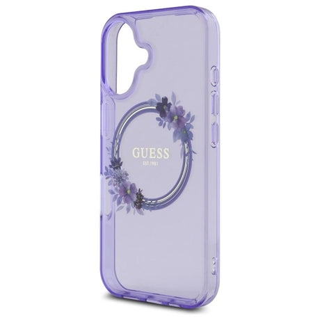 Guess IML Flowers Wreath MagSafe iPhone 16 Case - lilla