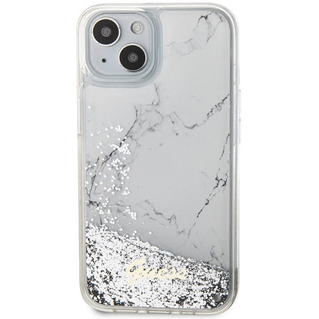 Guess Liquid Glitter Marble case til iPhone 14 - hvid