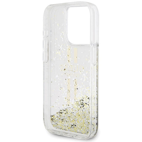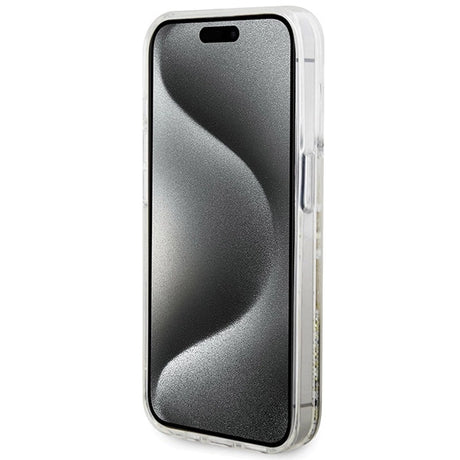 Guess Liquid Glitter Gold Stripes case til iPhone 15 Pro - gennemsigtig