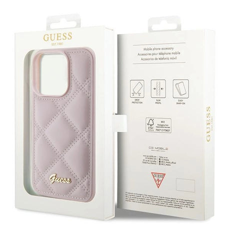 Guess Quilted Metal Logo Case til iPhone 15 Pro - pink