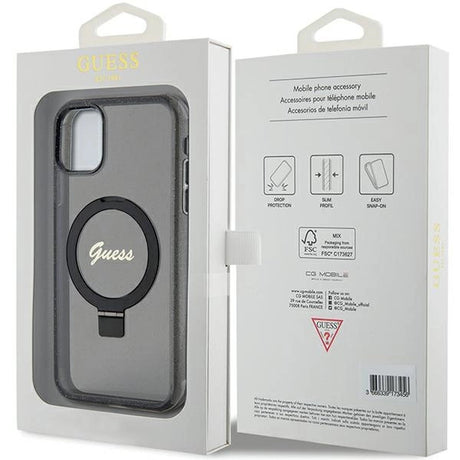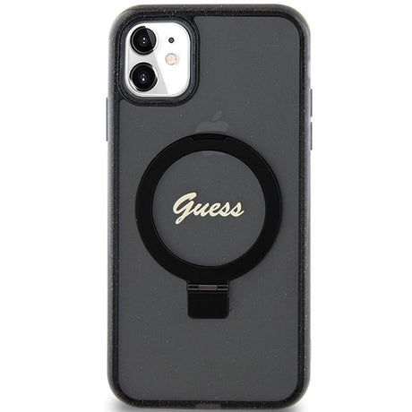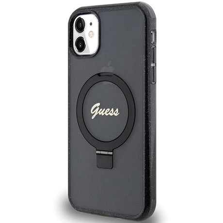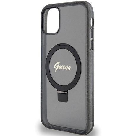 Guess Ring Stand Script Glitter MagSafe-hylster til iPhone 11 / Xr - sort
