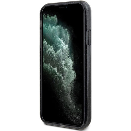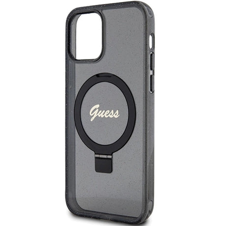 Guess Ring Stand Script Glitter MagSafe-hylster til iPhone 12/12 Pro - sort