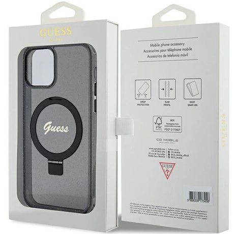 Guess Ring Stand Script Glitter MagSafe fodtøj til iPhone 13 / 14 / 15 - sort