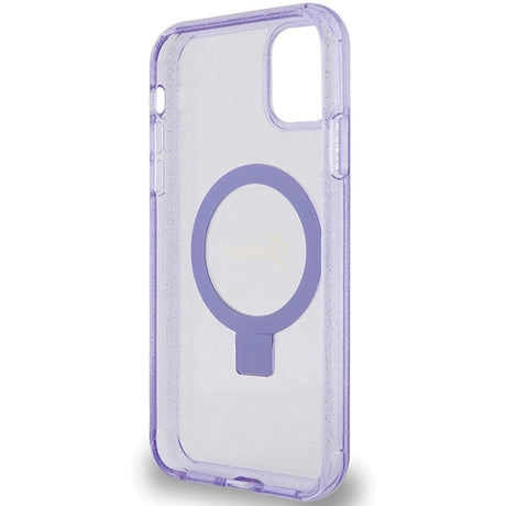 Guess Ring Stand Script Glitter MagSafe-hylster til iPhone 11 / Xr - lilla