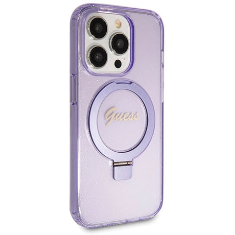 Guess Ring Stand Script Glitter MagSafe-hylster til iPhone 14 Pro Max - lilla