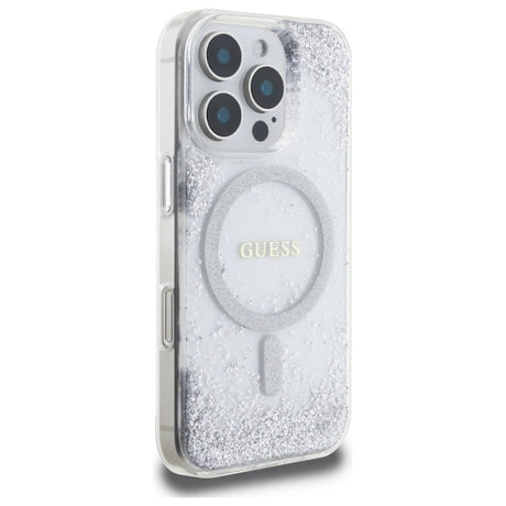 Guess Resin Gradient Glitter MagSafe-hylster til iPhone 16 Pro - sølv