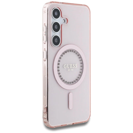 Guess Rhinestones Printed Classic Logo MagSafe Samsung Galaxy S25 Case Pink