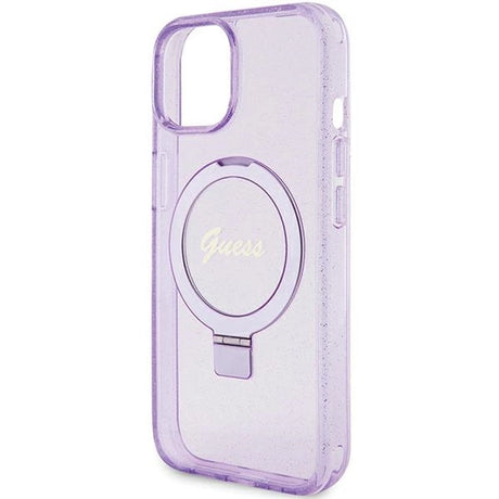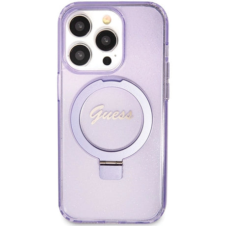 Guess Ring Stand Script Glitter MagSafe-hylster til iPhone 15 Pro - lilla