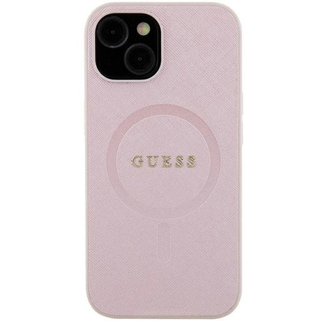 Guess Saffiano MagSafe-foder til iPhone 15 Plus - lyserød