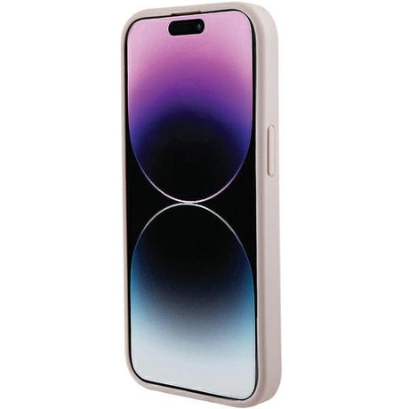 Guess Saffiano Iridescent Script-hylster til iPhone 15 Pro - pink