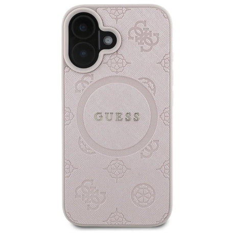 Guess Saffiano Peony Classic Logo MagSafe iPhone 16 Case - Pink