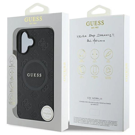 Guess Saffiano Peony Classic Logo MagSafe-hylster til iPhone 16 - sort