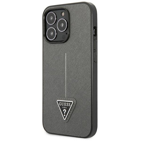 Guess Saffiano Triangle Logo-hylster til iPhone 13 Pro Max 6.7" - sølv
