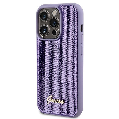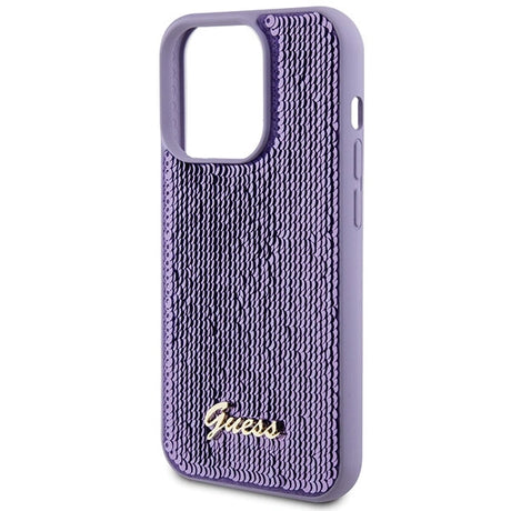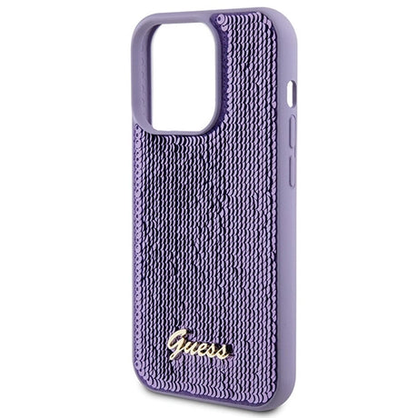 Guess Sequin Script Metallæske til iPhone 15 Pro - lilla