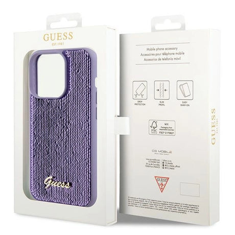 Guess Sequin Script Metallæske til iPhone 14 Pro Max - lilla