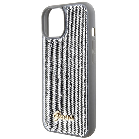 Guess Sequin Script Metallæske til iPhone 15 - sølv
