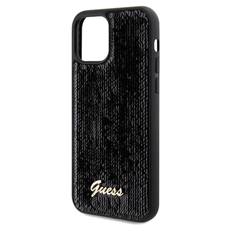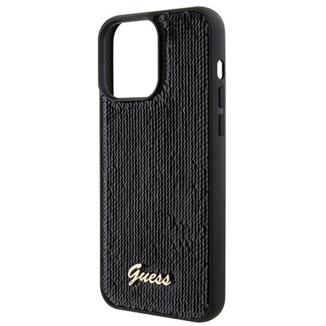 Guess Sequin Script Metallæske til iPhone 15 Pro Max - sort