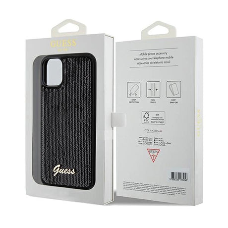 Guess Sequin Script Metallæske til iPhone 14 / 15 / 13 - sort