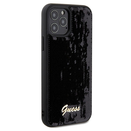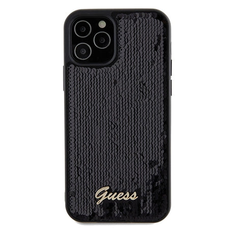 Guess Sequin Script Metallæske til iPhone 12/12 Pro - sort